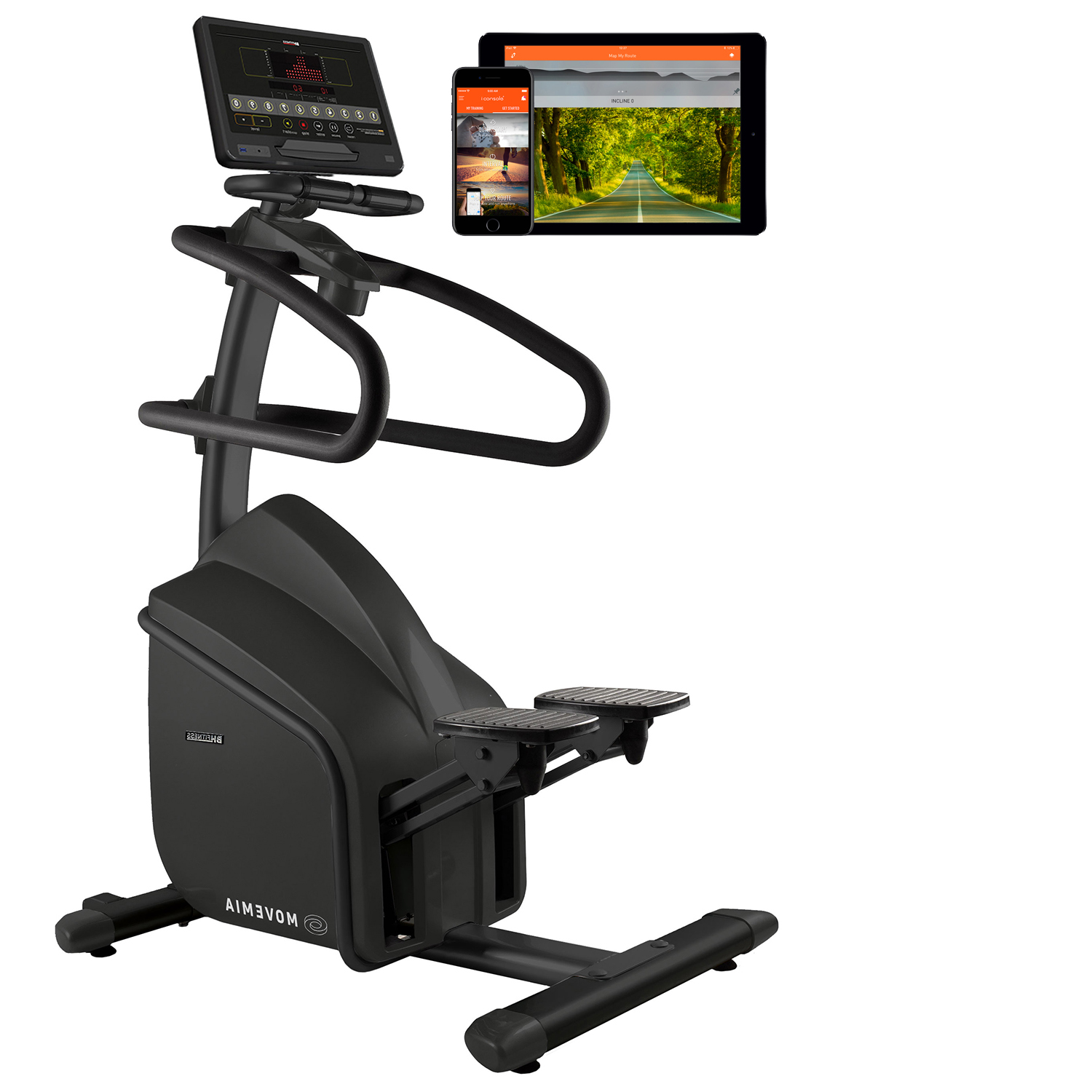 Movemia ST1000 Stepper fra BH Fitness har alle de faciliteter som kendetegner kvalitet. Den kraftige opbygning, de ekstra kraftige SKF kuglelejer i pedalarme og svinghjul, sammen med den store computer, giver brugerne den totale oplevelse af kvalitet og brugervenlighed. Den stærke konstruktion tillader uden problemer en maks. brugervægt på 190 kg. ST1000 er med skridsikre pedaler, samt multi-styr, som giver gode variationsmuligheder for placering af hænderne under brug. Computer indeholder et bredt udvalg af programmer, og har samtidig den nyeste FTMS Bluetooth teknologi. Dette gør computeren kompatibel med et stort udvalg af Apps., som brugeren kan downloade til mobil eller tablet. Kompatible Apps., er bl.a. Zwift, Kinomap, Rouvy, Bkool, Trainerroad, og Fullgaz.
