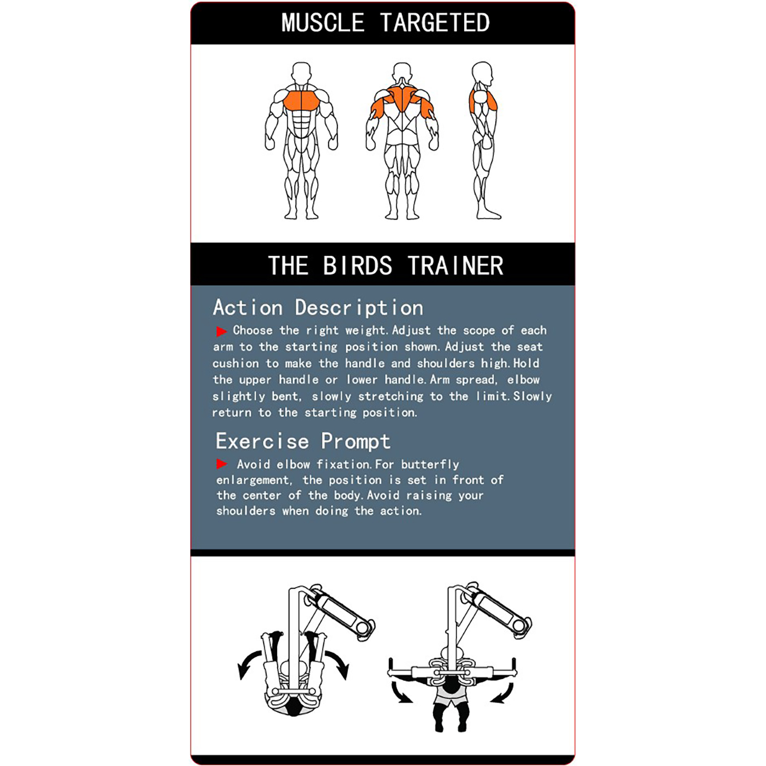 Kombi-maskine, hvor der både kan trænes bryst samt bagskulder. Med kliklåse indstilles let den ønskede startposition på armene. Sædet højdejusteres med olietryk, og quicklås slippes når sædet er i den ønskede position, hvorefter lås selv falder på plads. De to 2-grebs håndtag sikrer komfortabelt greb, og de er med behagelig og antibakteriel belægning. Vægtbelastning kan indstilles mens man sidder på maskinen.