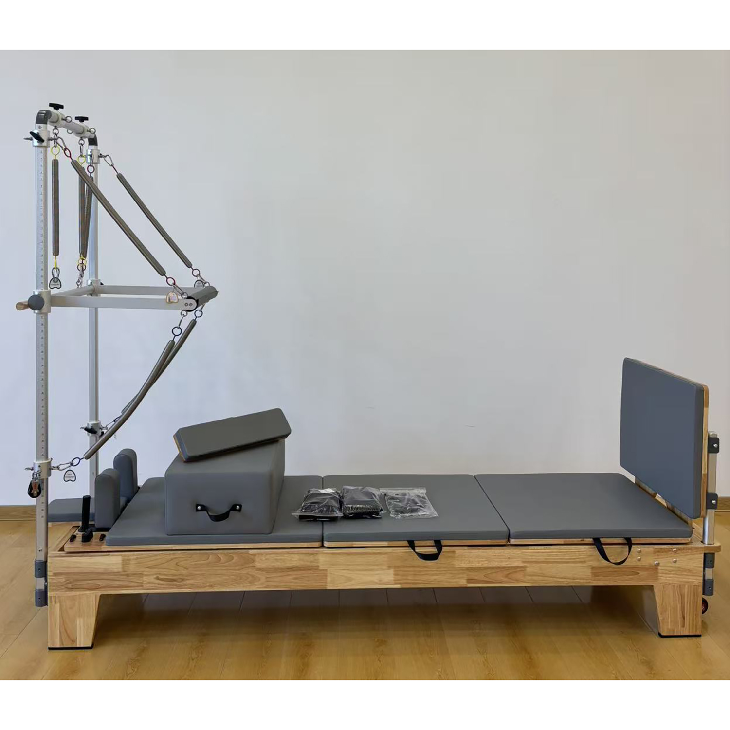 Professionel BM Line Pilates Reformer inkl. tower i eksklusiv kvalitet, udført i massivt gummitræ.