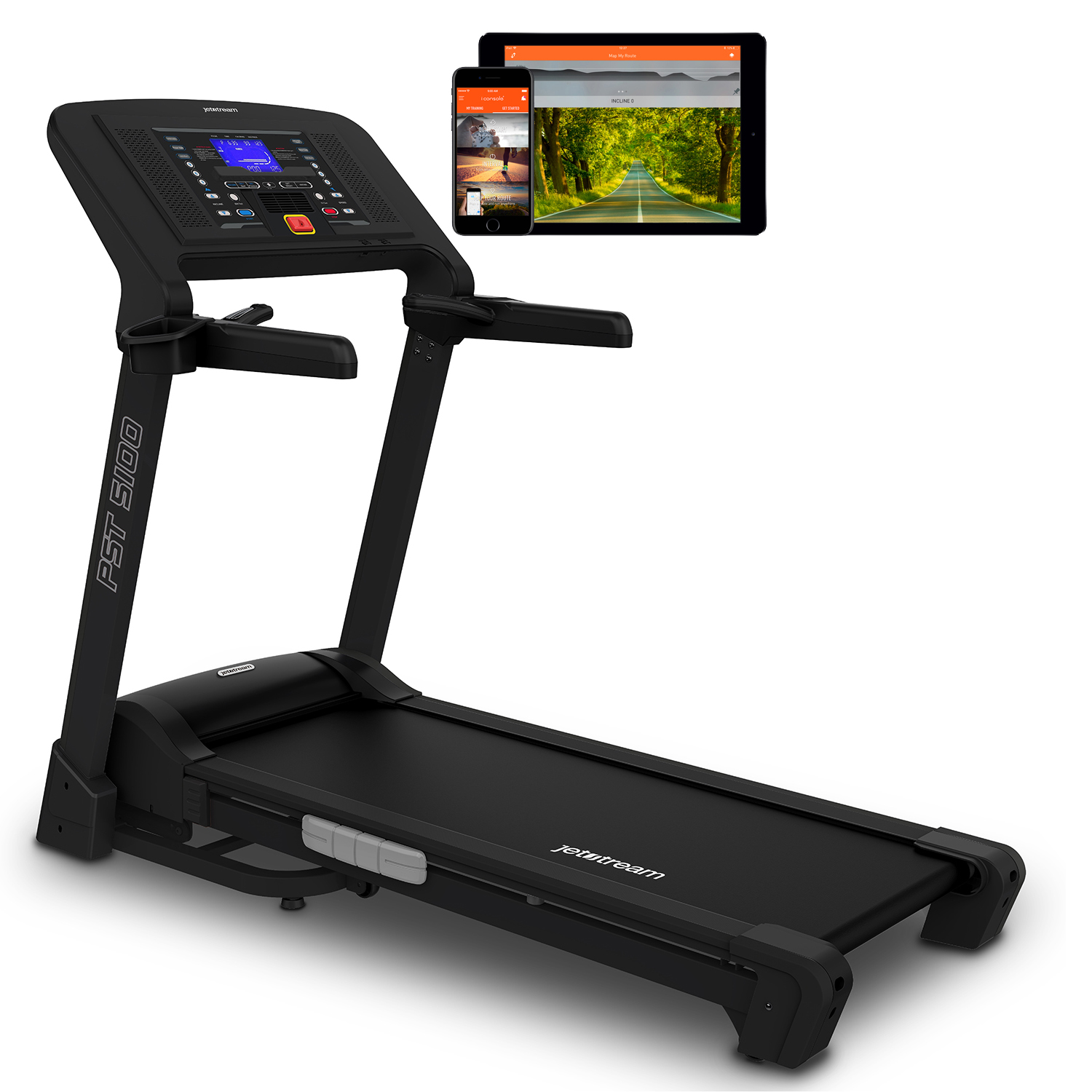 PST-5100 løbebåndet er med en stærk fuldsvejset bundramme, hvilket sikre stabilitet under brug. Løbefladen er på 51 x 142 cm., og har selvfølgelig god stødabsorbering for aflastning af knæ og led. Computeren er enkel at gå til så du hurtigt kan komme i gang, og indeholder samtidig et stort udvalg af programmer. Alle informationer aflæses let i computeren, hvor det store display er med baggrundslys. Der er på computeren quicktaster til både hastighed og hældning så dette hurtigt kan justeres efter ønske, og i computeren er også trådløs modtager til pulsbælte, hvilket giver mere bevægelsesfrihed ift. pulsstyrede programmer. Der er indbygget blæser, så man kan blive kølet af under turen, samt indbyggede højttalere så ekstern musikafspiller kan tilsluttes. På sidehåndtag kan der måles puls, samt ændres hastighed og hældning under brug.