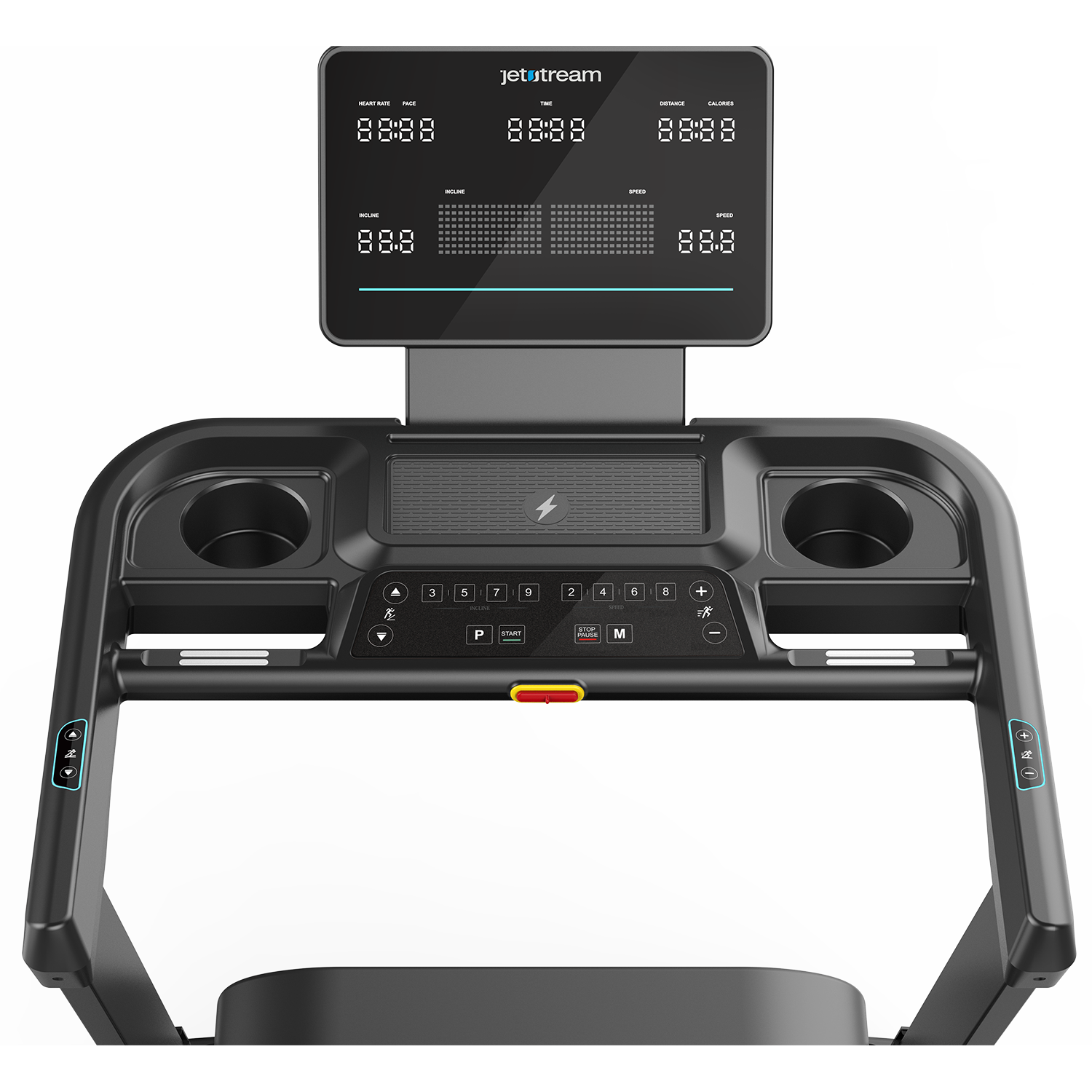 Den brugervenlige computer gør det nemt at komme i gang og tilbyder samtidig et bredt udvalg af træningsprogrammer. Alle træningsdata vises tydeligt på det store LED-display, og med praktiske quicktaster kan hastighed og hældning justeres hurtigt og nemt – også under træning. Som en ekstra feature, vises med 3 farver, hvilken hastighedszone man løber i. Dette vises både i bunden af skærmen og på sidehåndtag.